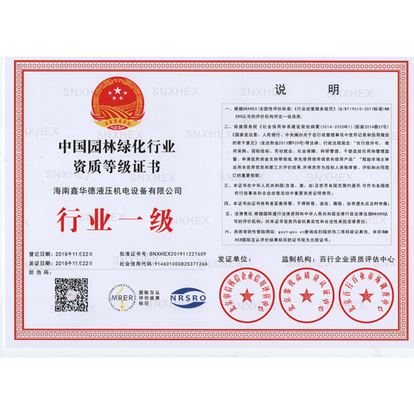 園林綠化資質(zhì)證書(行業(yè)一級)