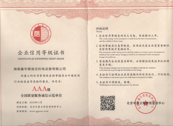 企業(yè)信用等級證書